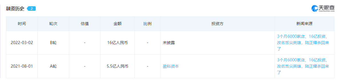 3月2日,据天眼查APP显示,舌尖科技完成了高达16亿人民币的B轮融资。并且,根据媒体披露数据,目前舌尖英雄的意向签约门店数量已经超过6000家,也就是在不到2个月内意向签约加盟商数量就实现了翻番。按照如此发展速度,有望超过瑞幸耗时20个月开到3000家门店的记录。